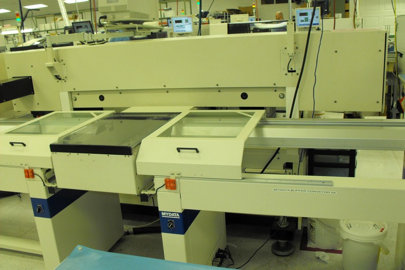 - 2001 Mydata My9 Pick & Place Machine with Hydra, Midas heads with SRC and HRC camera, Conveyor configuration with Tray Wagon